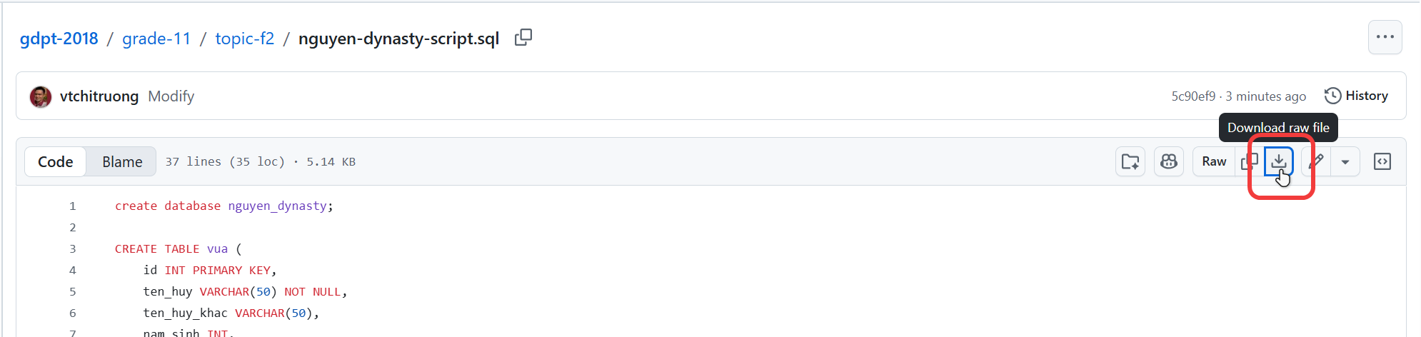 3. Lần lượt chạy từng đoạn mã trong tập tin để tạo cơ sở dữ liệu nguyen_dynasty 1.