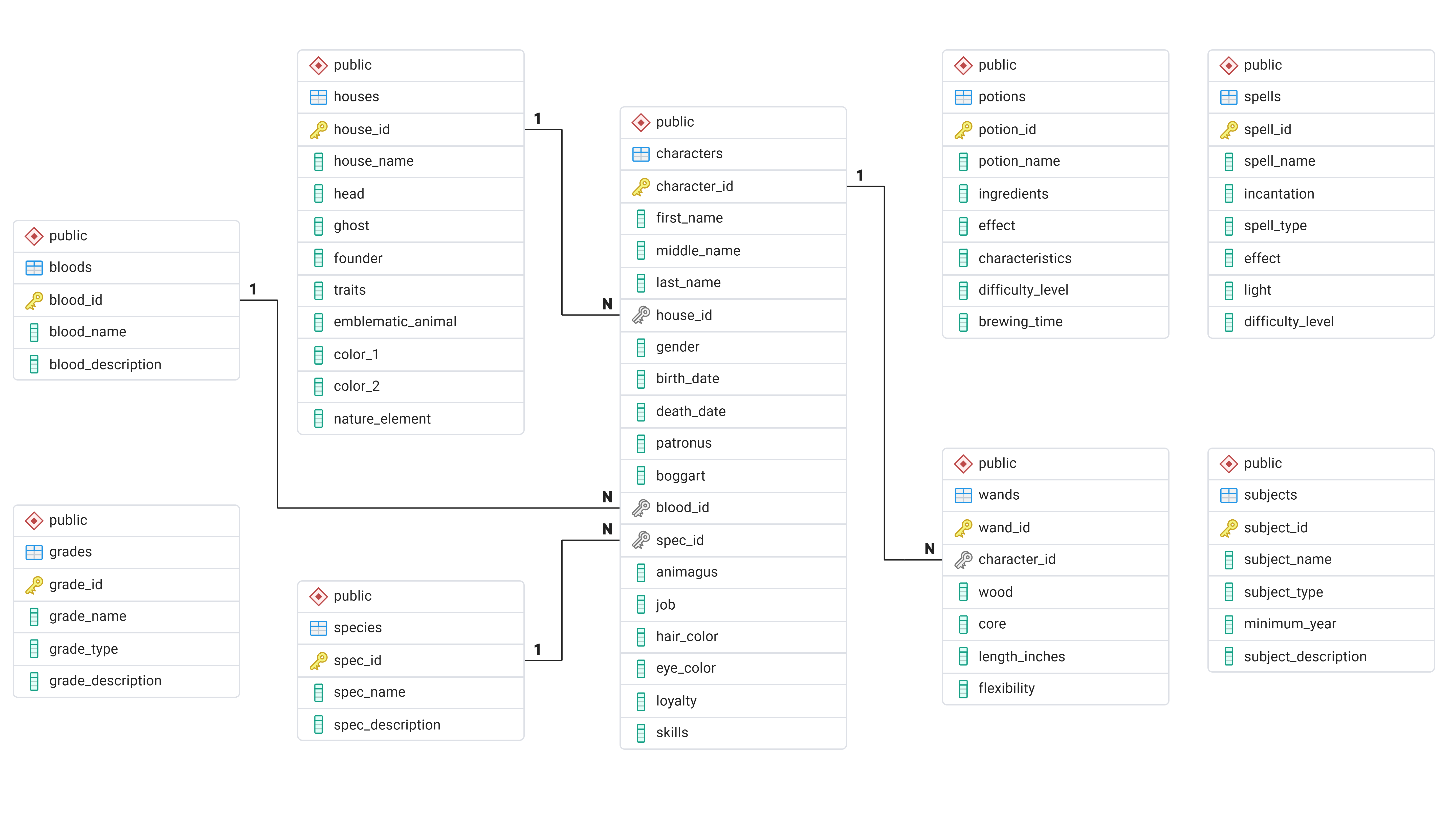 Hình sau là lược đồ cơ sở dữ liệu Hogwarts:
