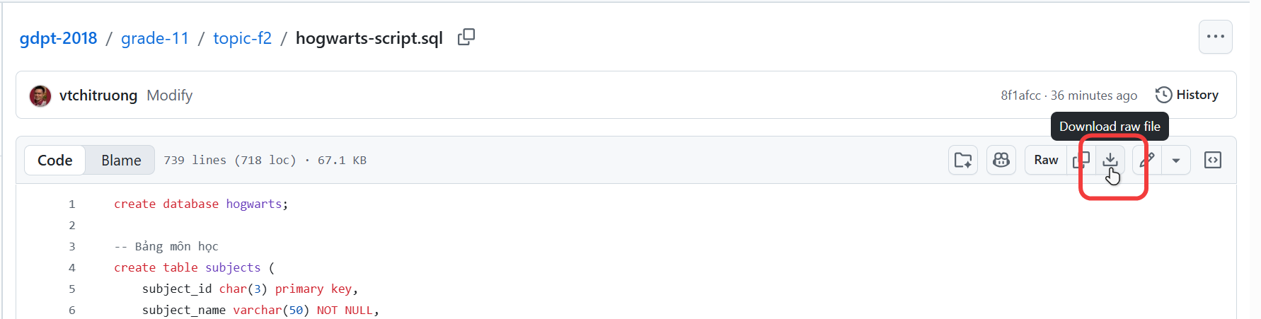 1. Tải về tập tin hogwarts-script.sql.