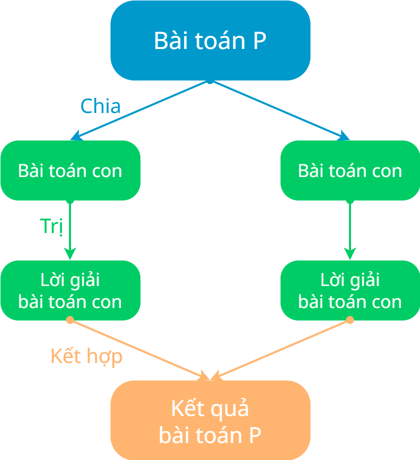Sau đó, các lời giải của bài toán con được kết hợp lại để hình thành lời giải cho bài toán ban đầu.