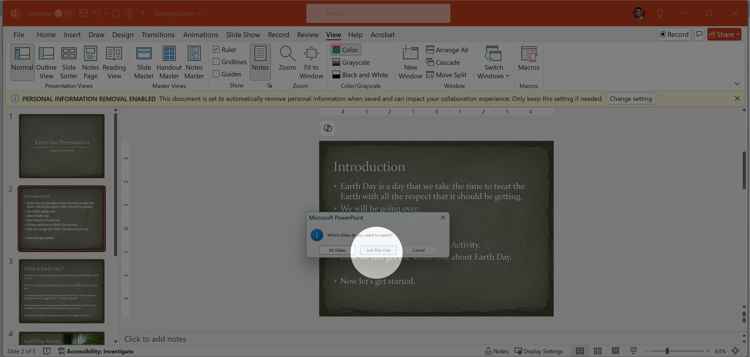 4. Khi gặp thông báo "Which slides do you want to export?", thì click Just This One.