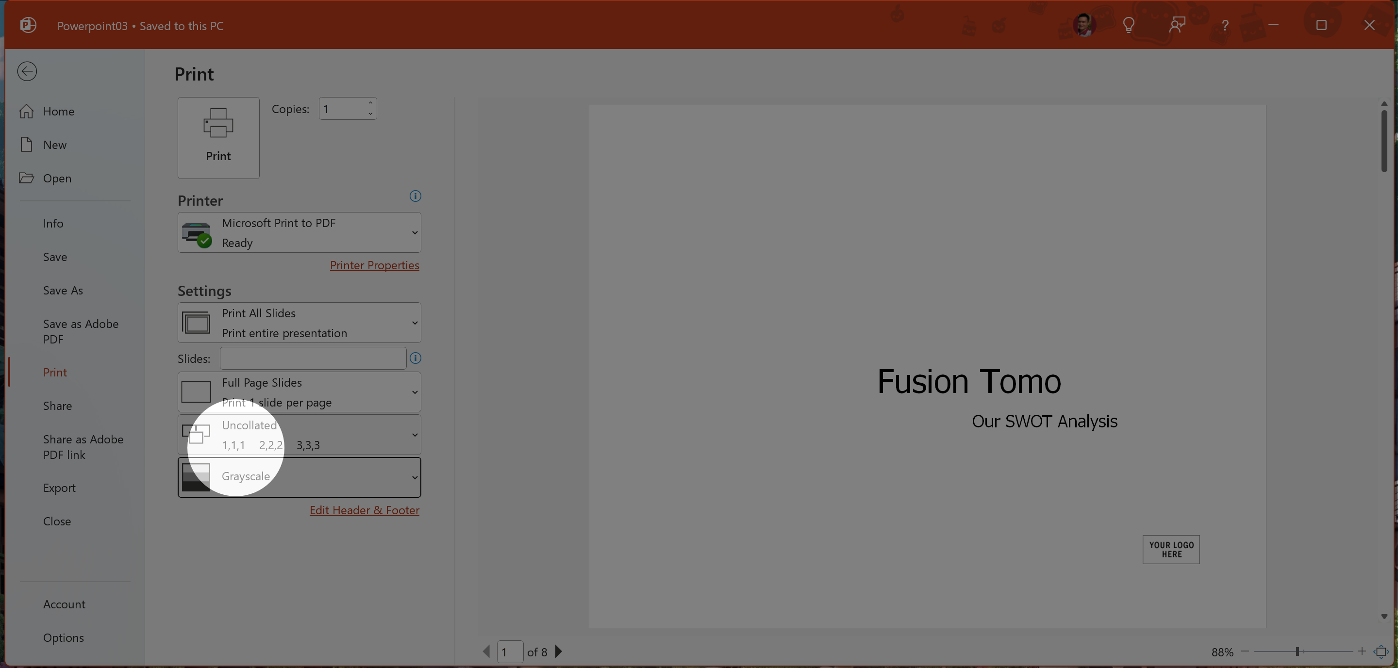Save the entire presentation as a PDF named Powerpoint01.pdf in the \GMetrixTemplates folder. Make sure the Open File After Publishing option is unchecked.