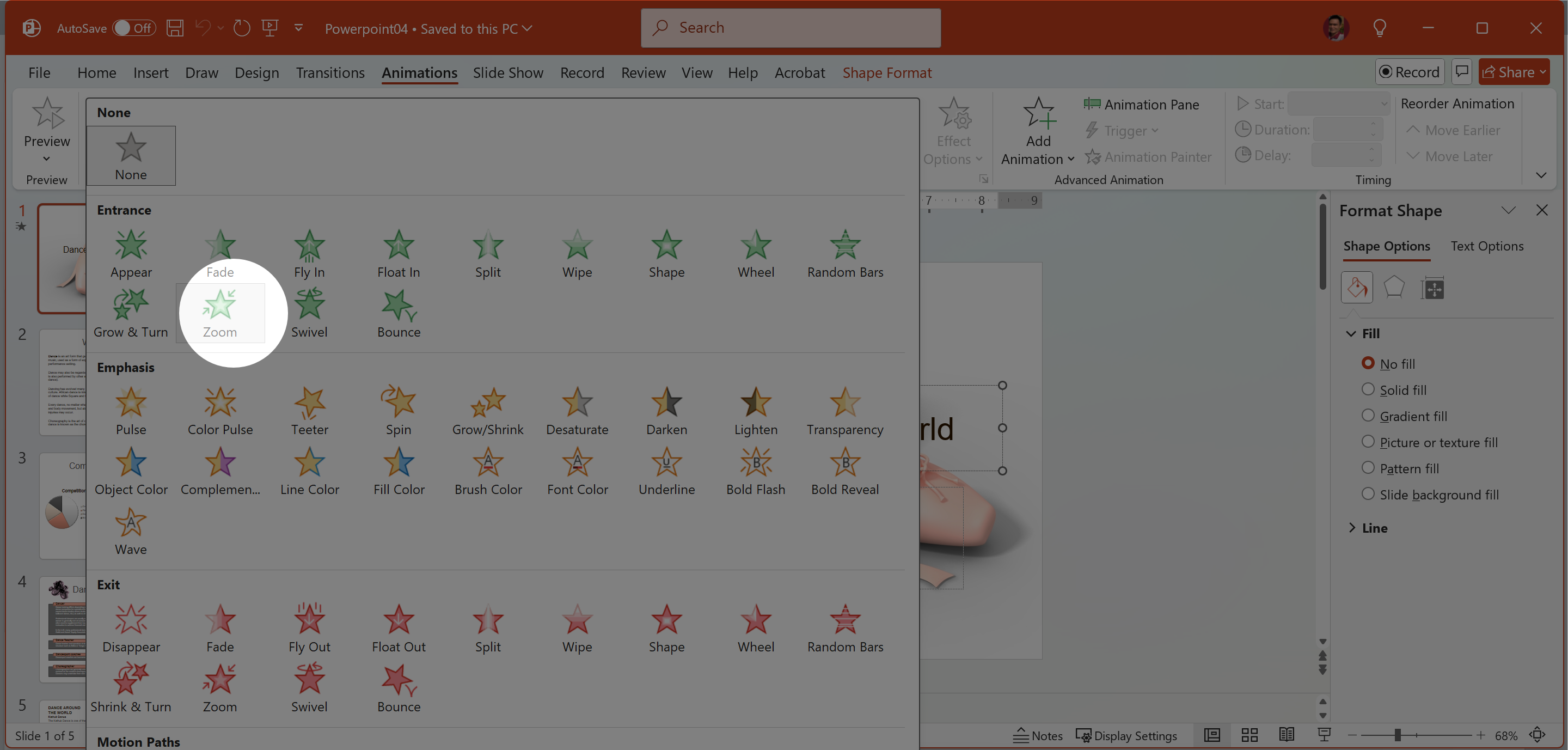 1. Chọn slide 4 > chọn hình dancing shoes.