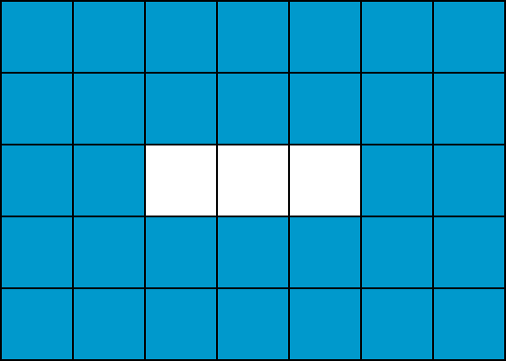 Gồm một dòng ghi 3 số nguyên dương \(m, n, T (3 \le m, n \le 10^9, 1 \le T < m \times n)\).